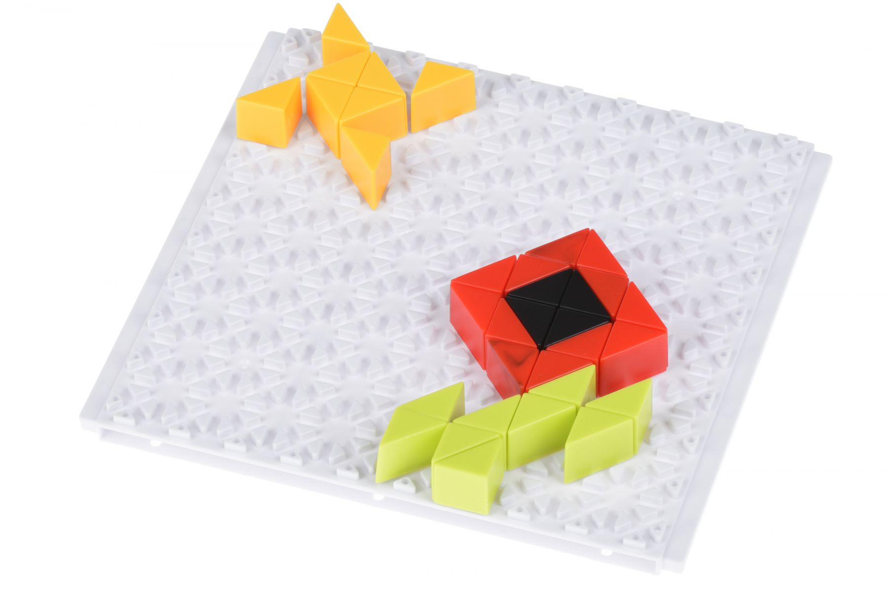 Чудова альтернатива звичайним пазлам – мозаїка від Same Toy, гра із великим розвиваючим потенціалом. Із маленьких квадратиків і трикутничків можна створити безліч творчих сцен. Різнокольорові елементи (жовті, помаранчеві, зелені, червоні, чорні) дозволять дітлахам складати щоразу все нові і нові зображення. Вони розвиватимуть уяву, фантазію, пам'ять, логіку і особливо дрібну моторику. Пазл-мозаїка «Home series» складається із: маленької пластикової основи та 123 різнокольорових кубиків і трикутників. У набір входить інструкція із прикладами схем створення мозаїки на тему «Будинки та природа». Пластик, з якого вироблені деталі, безпечний та нетоксичний. Рекомендований вік: 3+