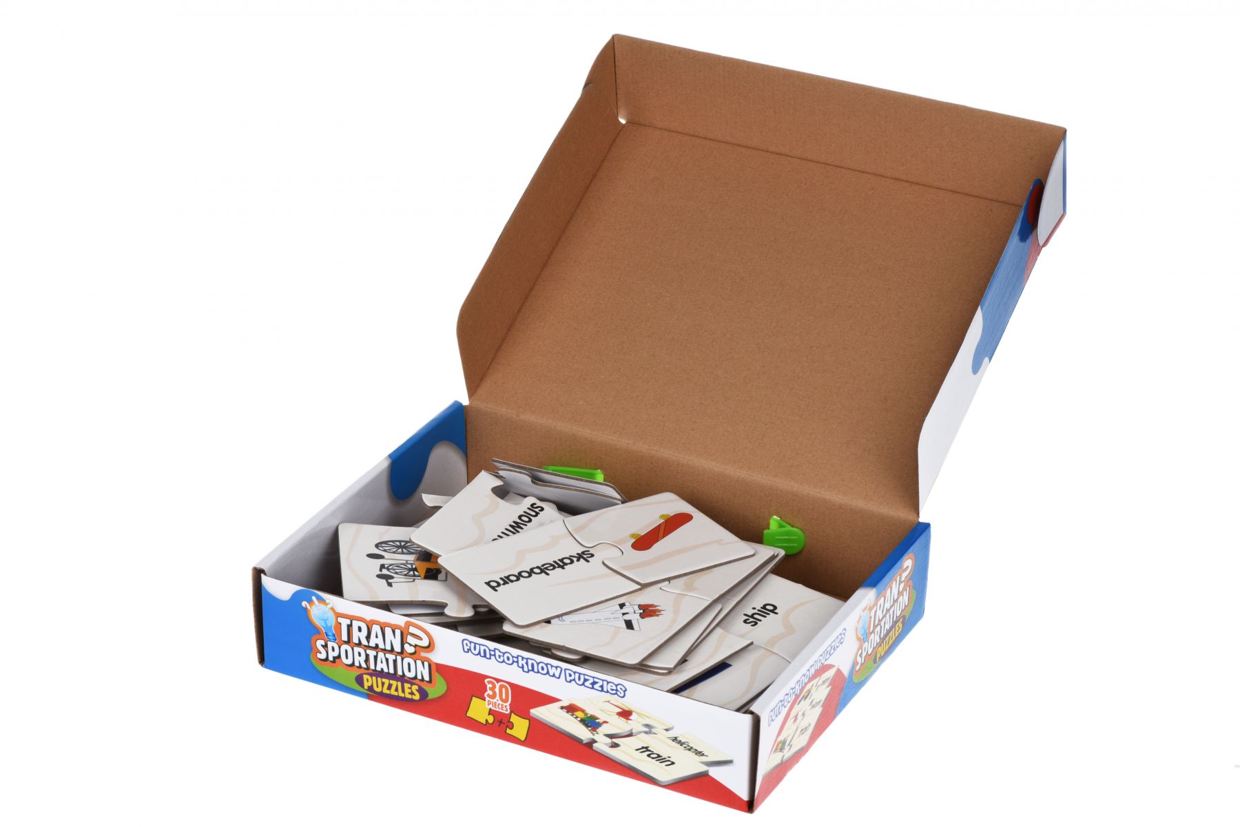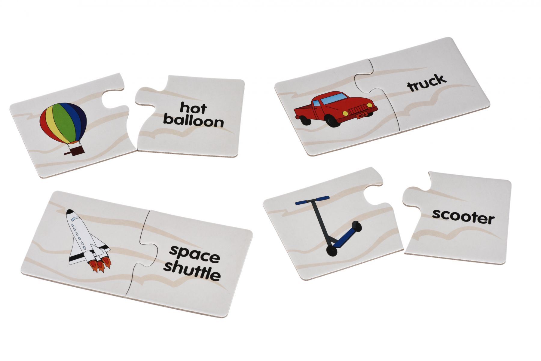 Пазл «Транспорт» - навчальний набір і одночасно пазл, який допоможе дітям познайомитися з новими явищами і вивчити нові слова англійською мовою. Головоломки точно сподобаються дітям, які без розуму від автомобілів, літаків і інших видів транспорту. У наборі 30 пар пазлів. Всього 60 фрагментів. На 30 фрагментах - зображення різних моделей, на інших 30 - слова, які їм відповідають. Перед дитиною завдання - правильно поєднати предмети: зображення і назва транспорту. Пазли виготовлені з щільного картону, які не ушкодяться під час експлуатації. Зображення нанесено нетоксичними фарбами. Для дітей від 3 років.