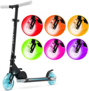 Особливості:складна конструкція, система підсвічування, широка дека і велике ножне заднє гальмо, доступно 2 регулювання висоти керма 78 та 68 (від підлоги)