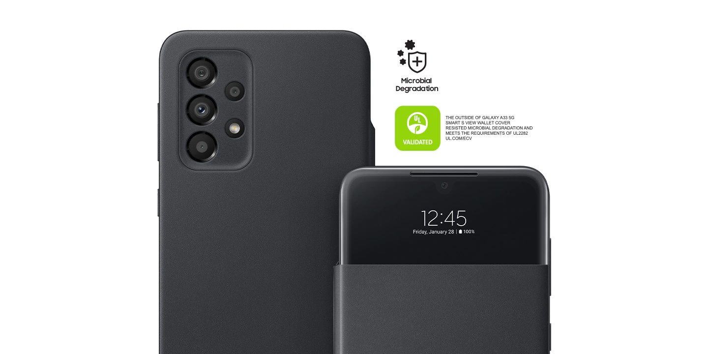 Захистіть телефони. Врятуйте нашу галактику. Побачити дерево та ліс. Відповідно до нашої сертифікації переробленого вмісту, цей чохол-гаманець для Galaxy A33 5G Smart S View Wallet Cover тепер частково виготовлений з використанням переробленого після споживання вмісту, а також постачається в більш екологічній упаковці, в якій пластик замінено папером.