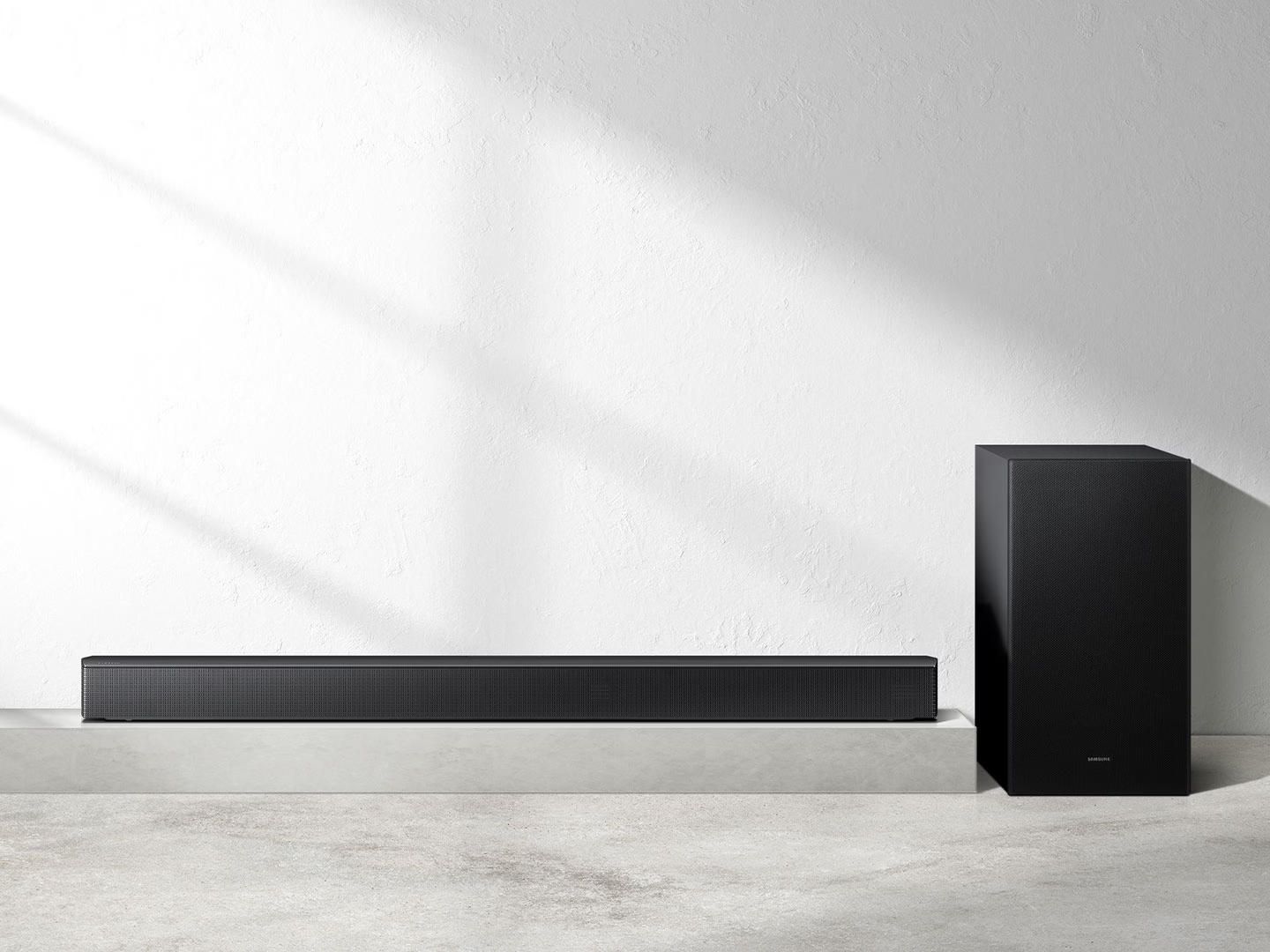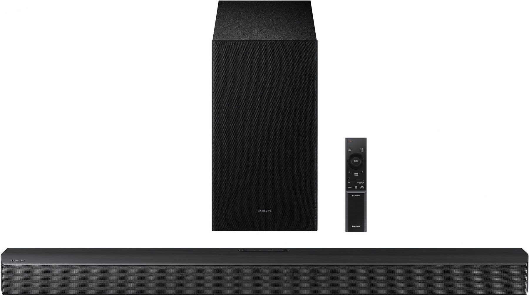 Samsung HW-B650D – потужний саундбар 3.1 із загальною вихідною потужністю 430 Вт та бездротовим сабвуфером. Підтримує Dolby 5.1, DTS Virtual:X, Bass Boost, Adaptive Sound та Game Mode для об’ємного й насиченого звучання.