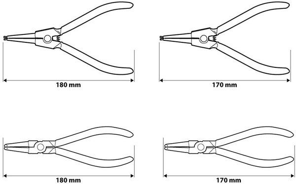 Щипці для стопорних кілець Neo Tools, набір 4 шт., CrV, 2х170мм та 2х180мм