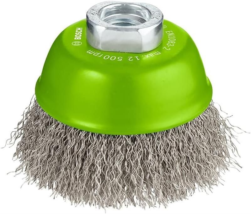 Чашкова щітка Bosch Professional 75 мм із дротом 0.5 мм — надійний інструмент для грубого очищення металевих поверхонь, видалення іржі, фарби та нагару.