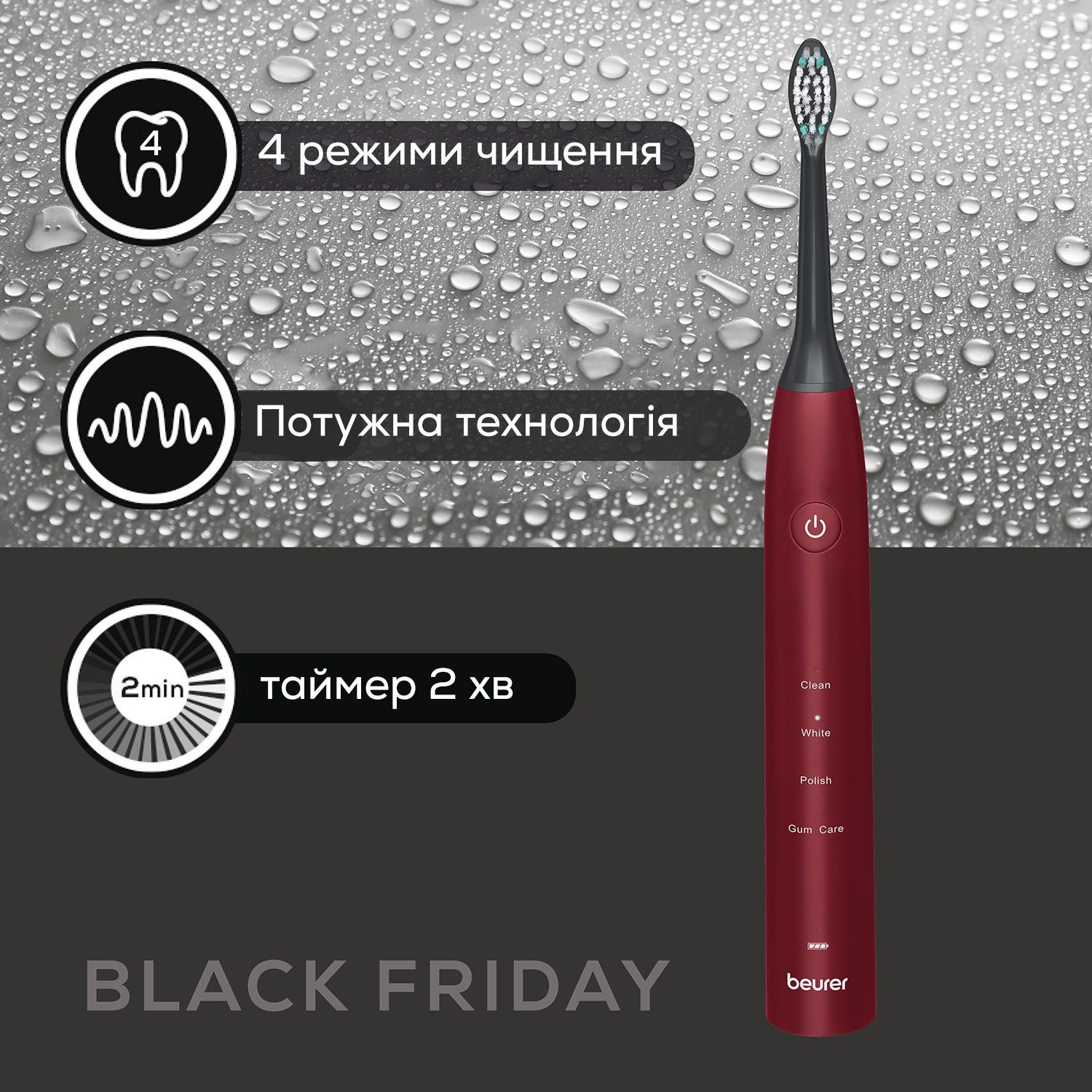 Щітка зубна електр. Beurer, Jet LE2025 GP, 80т. колив/хв, насадок-2, 5 режимів, бордо