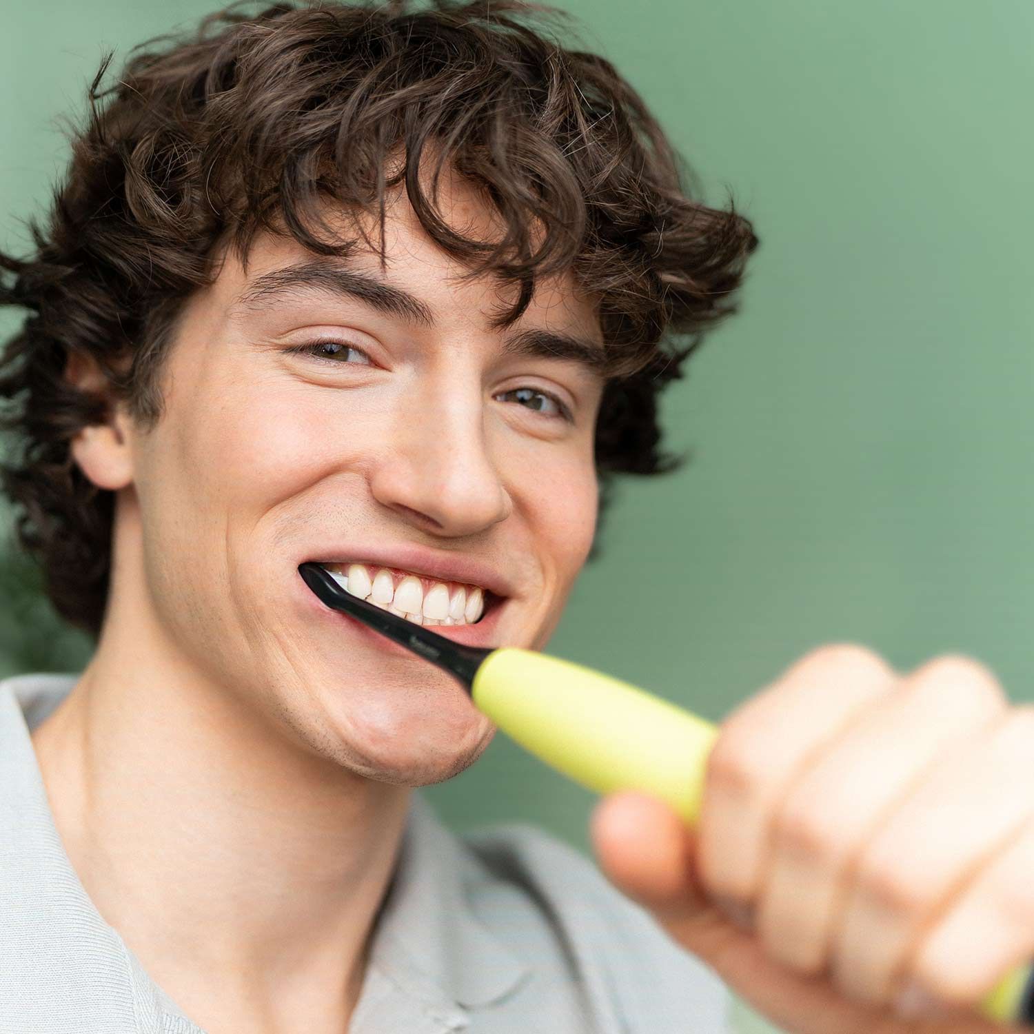 Beurer SC 50 Splashy Lemon GP — звукова зубна щітка у яскравому жовтому дизайні з п’ятьма режимами очищення, потужним акумулятором до 22 днів роботи та зручною магнітною станцією заряджання. Екоматеріали корпусу й щетинок, таймер, датчик тиску та індикація смайликами допомагають підтримувати щоденну гігієну ротової порожнини вдома і в дорозі.