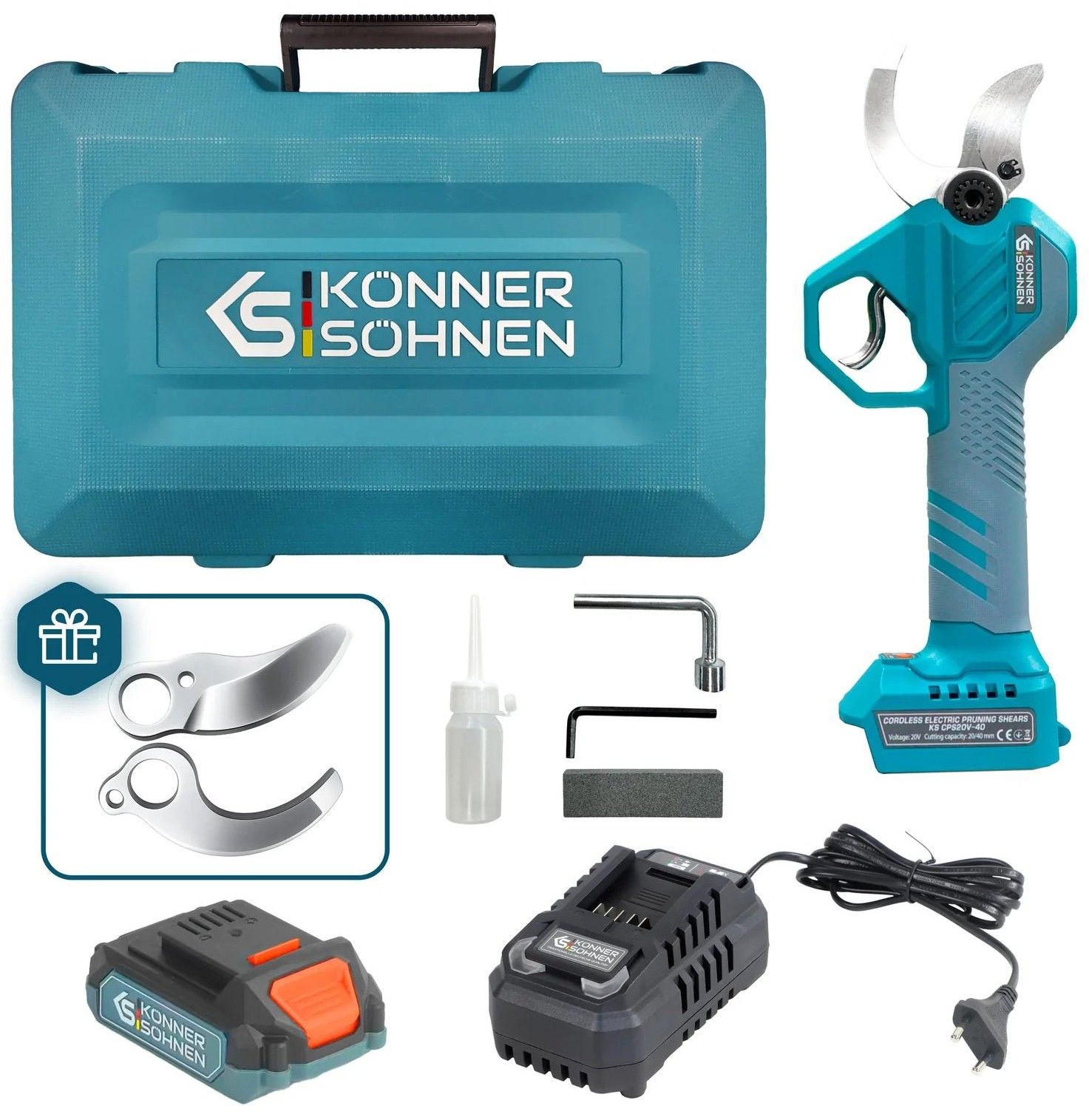 Секатор акумуляторний Konner&Sohnen KS CPS20V-40 CASE 20В акб 1х2А·год d 20-40мм ЗП кейс 1.0кг