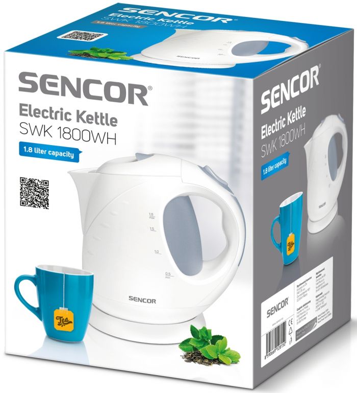 Нагрівальна база з нержавіючої сталі з закритим нагрівальним елементом. Кришку легко відкрити, натиснувши на кнопку в верхній частині ручки. Блокування кришки в закритому положенні. Двостороння мітка рівня води. Зберігання мережевого проводу в підставі чайника