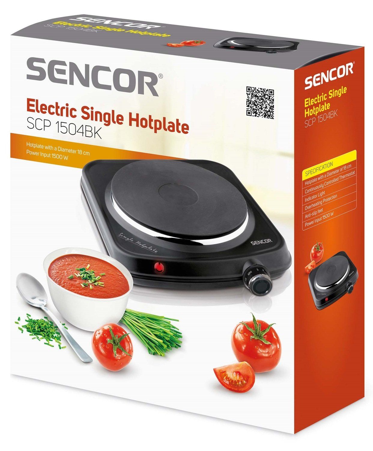 Настільна плита Sencor SCP1504BK-EUE4 із захистом від перегріву, потужністю 1500 Вт ідеально підходить для гуртожитку, офісу або наметового табору.