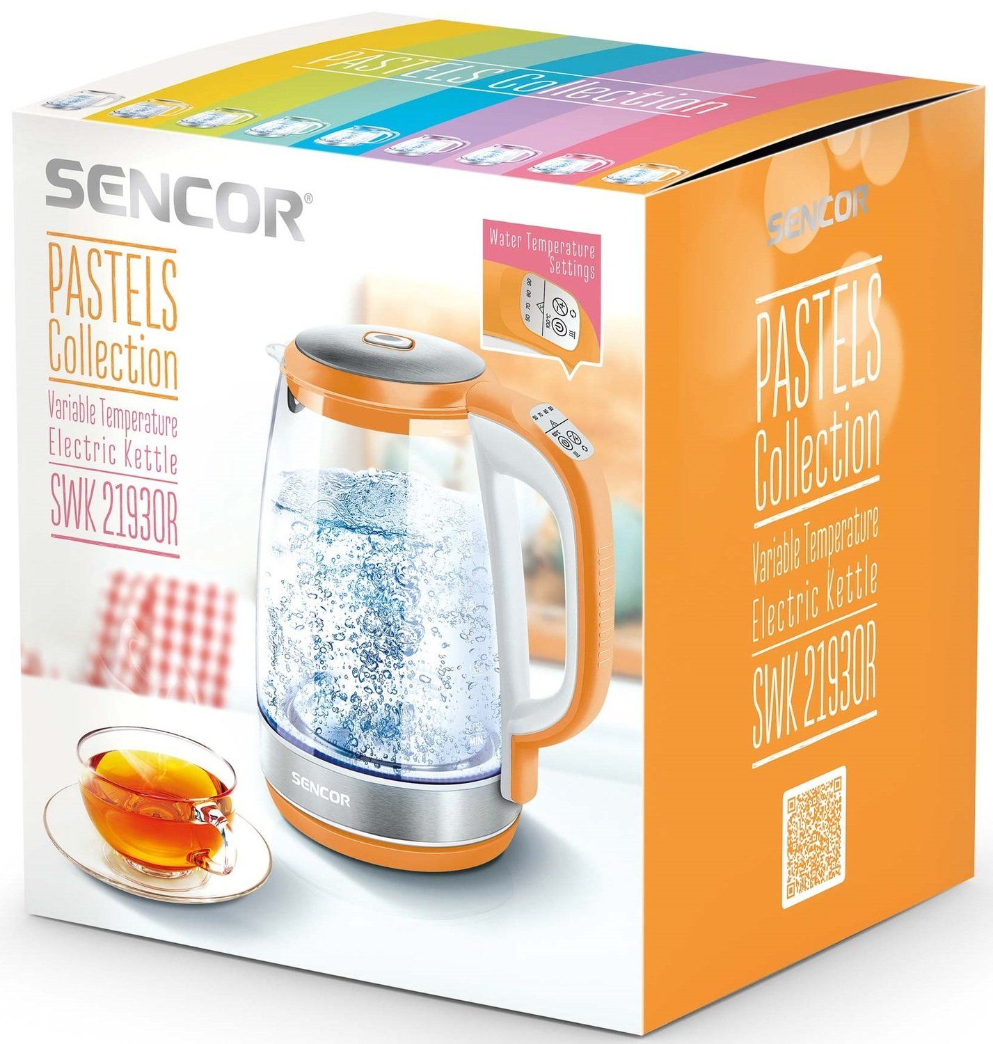 Електрочайник Sencor SWK2193OR підтримує температуру протягом 30 хвилин, оснащений фільтром бруду і вапняного нальоту, світлодіодним підсвічуванням і потрійною системою безпеки.