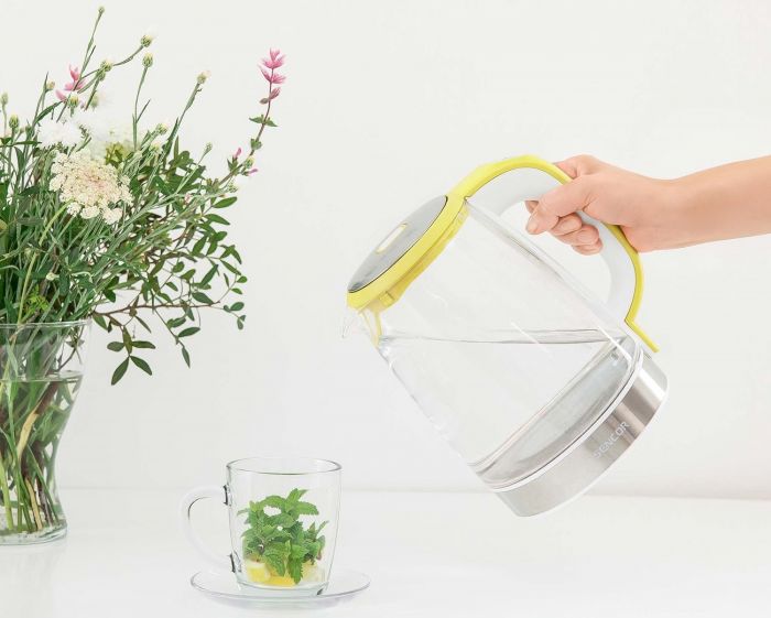 Електрочайник Sencor SWK2196YL підтримує температуру протягом 30 хвилин, оснащений фільтром бруду і вапняного нальоту, світлодіодним підсвічуванням і потрійною системою безпеки.