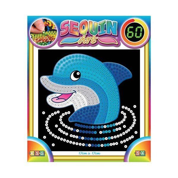 Зображення веселого життєрадісного дельфіна можна створити за допомогою набору для творчості Sequin Art. Секрет яскравості і барвистості картинки – у незвичайному матеріалі – блискітках. Набір містить безліч різнокольорових деталей-блискіток, форму з пінополістиролу, основу- трафарет, шпильки для закріплення блискіток. Блискуче зображення можна зібрати всього за годину. Звідси і назва серії – «60». Набір – чудовий подарунок як для дітей, так і для дорослих.