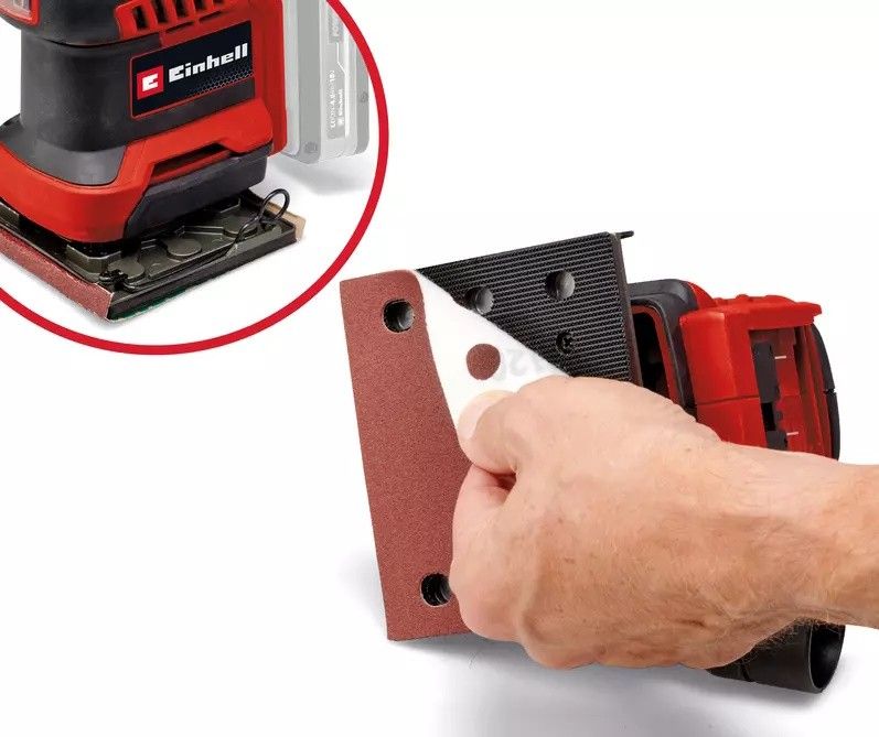 Шліфмашина вібраційна акумуляторна Einhell TE-OS 18/113 Li - Solo серії Expert є високоякісний, зручний інструмент, який поєднує в собі хорошу ергономіку з функціональністю, шліфувальна машина має коливальний контур 1,8 мм з встановленою шліфувальною пластиною 101 x 113 мм. Шліфувальна машинка Einhell TE-OS 18/113 Li - Solo ідеально підходить для шліфування плоских поверхонь з дерева та деревних матеріалів, а також для швидкого видалення фарби або лаку. Для забезпечення чистоти роботи вібраційна шліфувальна машина оснащена вбудованою системою видалення пилу з пилозбірником і знімним гофрованим фільтром. В якості альтернативи можна підключити пилосос Einhell для забезпечення максимальної чистоти.