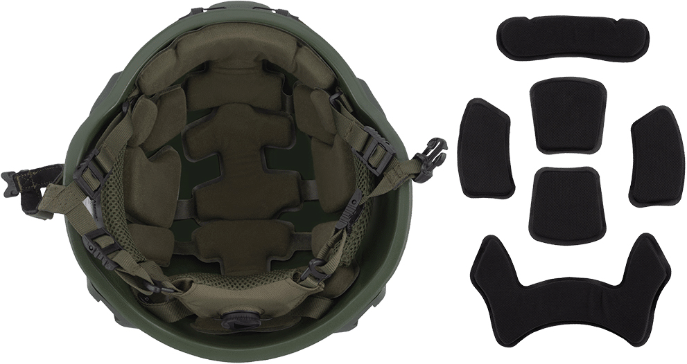 Особливості:амортизуюча система: два шари педів для зручного припасування, лобове кріплення для приладу нічного бачення, бічні рейки, система велкро по всій площі купола