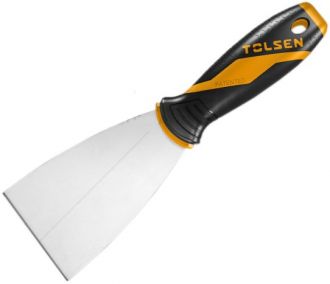 Шпатель Tolsen 30 мм виготовлений із високоякісної інструментальної сталі товщиною 1,1 мм, має дзеркальну поліровку та ергономічне двокомпонентне руків’я TPR для зручності роботи.