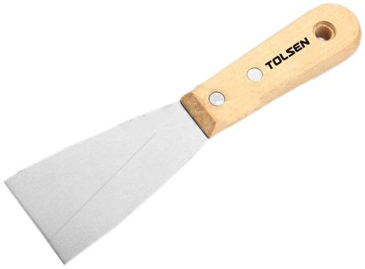 Шпатель Tolsen 40202 шириною 50 мм виготовлений із високоякісної інструментальної сталі, термічно оброблений для підвищеної міцності та довговічності. Має тонке полірування та зручне дерев’яне руків’я для комфортної роботи.