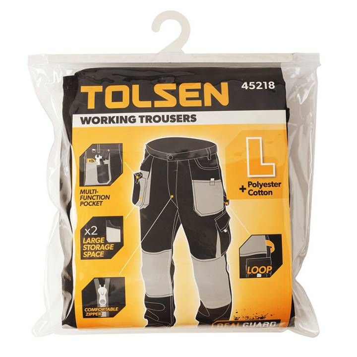 Робочі штани Tolsen L – зручний і функціональний елемент спецодягу, призначений для будівельних, виробничих та майстерних робіт. Виготовлені з зносостійкого матеріалу, що забезпечує стійкість до механічних пошкоджень. Оснащені багатофункціональними кишенями та спеціальною петлею для молотка, що дозволяє зберігати інструменти під рукою. Ергономічний крій, еластичні вставки та посилені зони забезпечують комфорт, свободу рухів і довговічність навіть у найінтенсивніших умовах роботи.