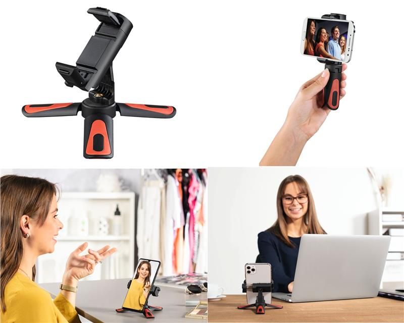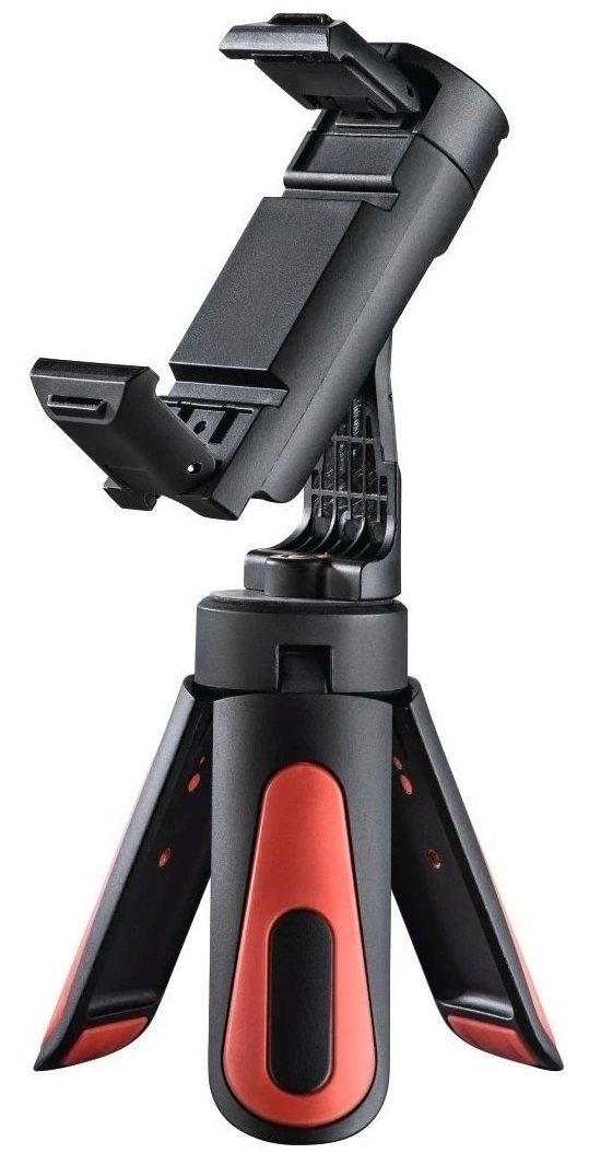 Міні-штатив для смартфонів у зручному кишеньковому форматі для зйомки без тремтіння. Компактний та зручний. Ідеальний для відео-щоденників, блогів, а також для подорожей та виїздів на природу. Холодний башмак для кріплення, наприклад, світлодіодних ліхтарів та мікрофонів. Міні-штатив з кріпленням ¼. Сумісний зі смартфонами шириною від 5,8 до 8,5 см (у горизонтальному форматі) завдяки затискному пружинному тримачу. Гумові вставки на тримачі захищають корпус смартфона від подряпин. Прогумовані ніжки штатива надійно фіксують його та запобігають ковзанню.