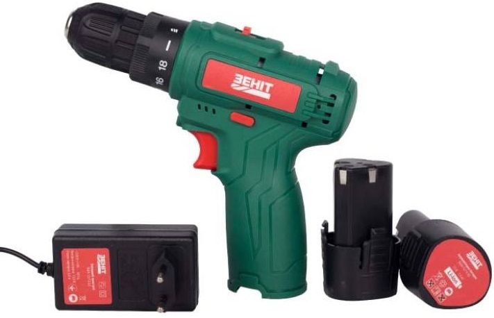 Шурупокрут-дриль акумуляторний Зеніт ЗША-12/15 S2 12В 2х1.5А·год 18Нм 350·1350об/хв 1кг кейс