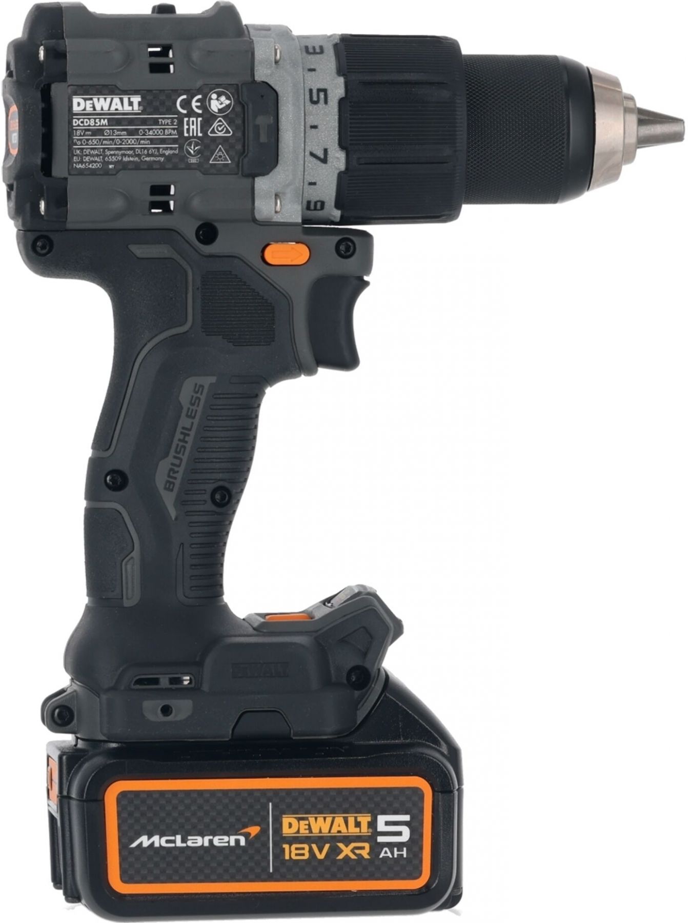 Ударний шурупокрут-дриль DeWALT DCD85MP2T McLaren F1 Team Limited Edition поєднує фірмовий гоночний дизайн і професійну потужність. Крутний момент 90 Нм, ударний режим і безщітковий двигун XR забезпечують впевнену роботу з різними матеріалами. Компактний корпус і збалансована вага підходять для інтенсивних монтажних робіт. Комплект із двома акумуляторами 5 А·год готовий до роботи без перерв.