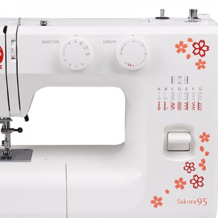 Швейна машинка Janome Sakura 95 — компактна електромеханічна модель із простим керуванням і необхідним функціоналом для якісного шиття різних типів тканин — від шовку до шкіри. Оснащена LED-підсвічуванням, вертикальним човником для тихої роботи, знімним вільним рукавом для обробки циліндричних виробів, заправлювачем нитки, ниткообрізувачем та системою швидкої зміни лапки.