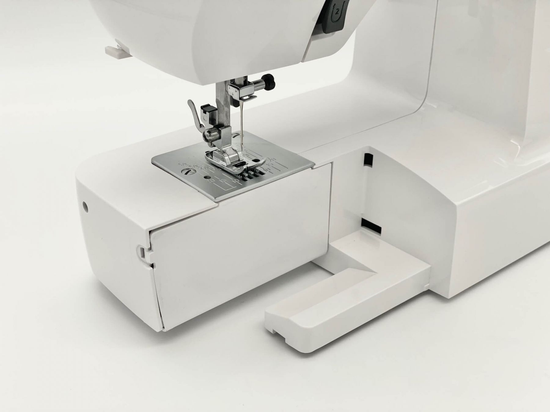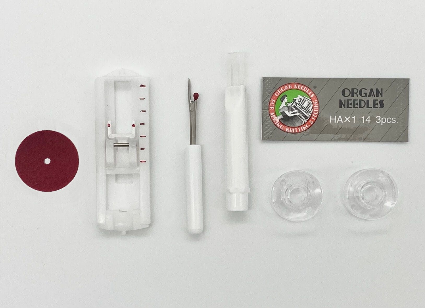 Комплектація:інструкція користувача, Набір голок, Чохол, Шпульки, Лапка для петлі, Універсальна лапка, Вспорювач-щіточка, Ножна педаль, Фетрова підкладка