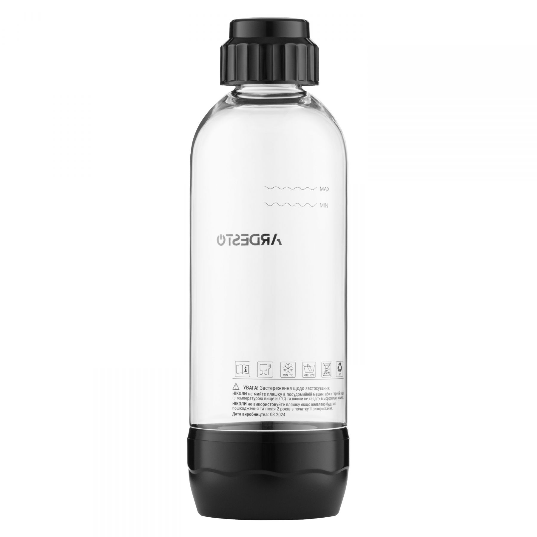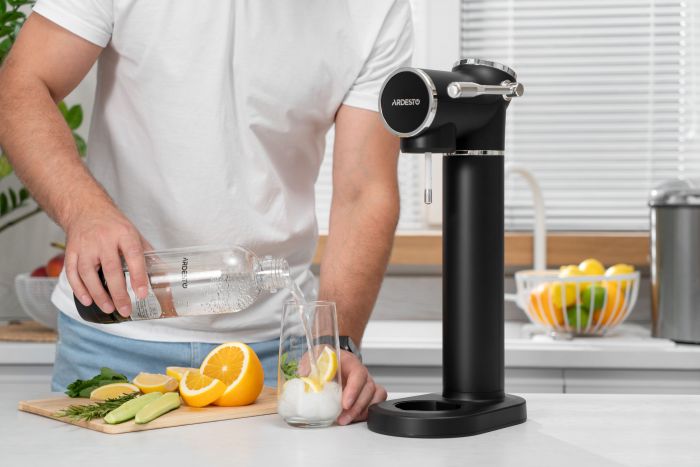 Сифон для газування води Ardesto, підключення балону- різьба, пляшка 1л, чорний