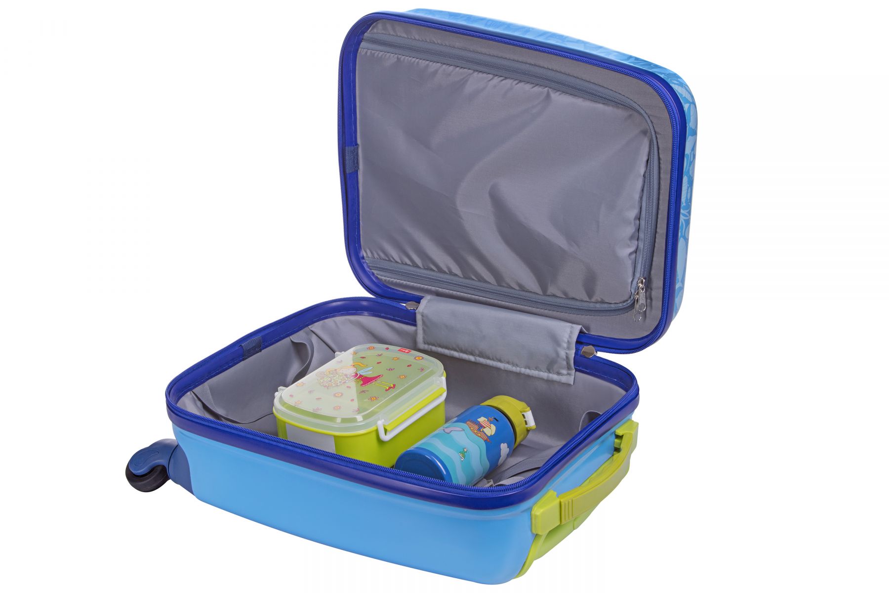 Коли вся родина збирається на море, кожному потрібен власний чемоданчик з необхідними речами. Валіза на колесах sigikid серії Sammy Samoa для дітей від трьох років. Валіза блакитного кольору із зображенням пірата ідеально підходить для кожного хлопчика, який любить пригоди. Чемодан на 4 колесах і з висувною ручкою, завдяки чому навіть дитині буде легко транспортувати його. Валіза має два відділення. Розмір: 40 x 30 x 22 см.