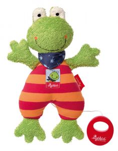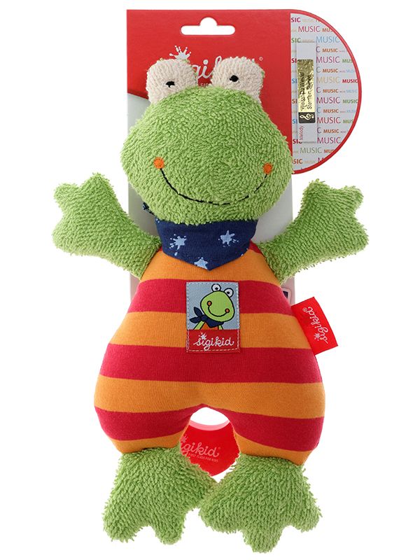 М'якенька та водночас музична іграшка у вигляді жабки. Іграшка всередині з музичною скринькою, яка дуже просто запускається. Просто потягніть за спеціальне червоне кільце і іграшка почне програвати приємну колискову. Заспокійлива мелодія сприятиме міцному сну дитини. Щаслива жаба з шарфом простягає лапки для обіймів. Гармонійні нейтральні кольори заспокоюватимуть дитину. Така жабка – ідеальний подарунок на хрещення або день народження немовляти.