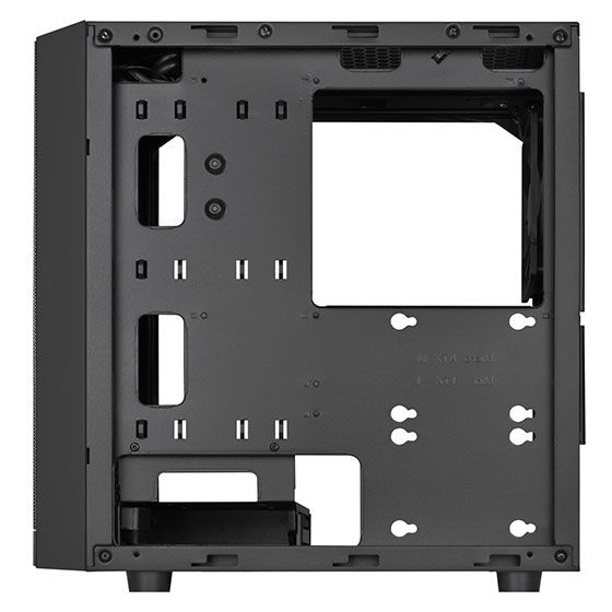 Передня панель з отворами і оптимізована компоновка для відмінного охолодження. Наявний виріз за материнською платою для доступу до кріплення кулера. Повністю чорний внутрішній простір корпусу. Підтримка карт розширення до 12,3 "(314 мм). Бокова панель із загартованого скла. 120-міліметровий вентилятор RGB (тільки версія RGB)