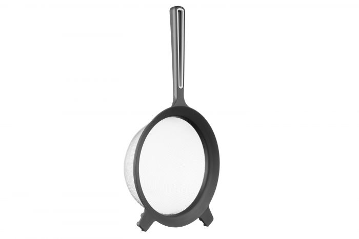 Зручне стильне сито з пластику та нержавіючої сталі діаметром 17 см. Оснащено ергономічним пластиковим руків’ям сірого кольору з білою вставкою, що є приємним на дотик. Стане надійним помічником під час готування страв. Можна мити в посудомийній машині.