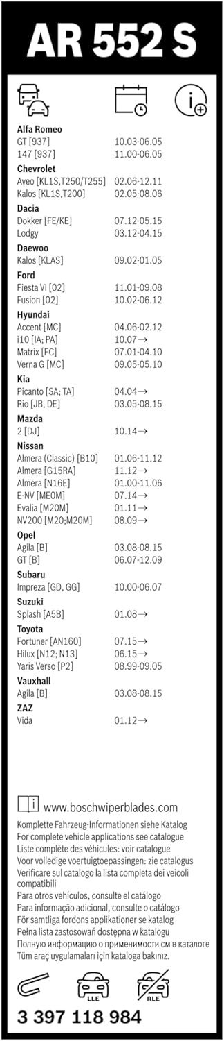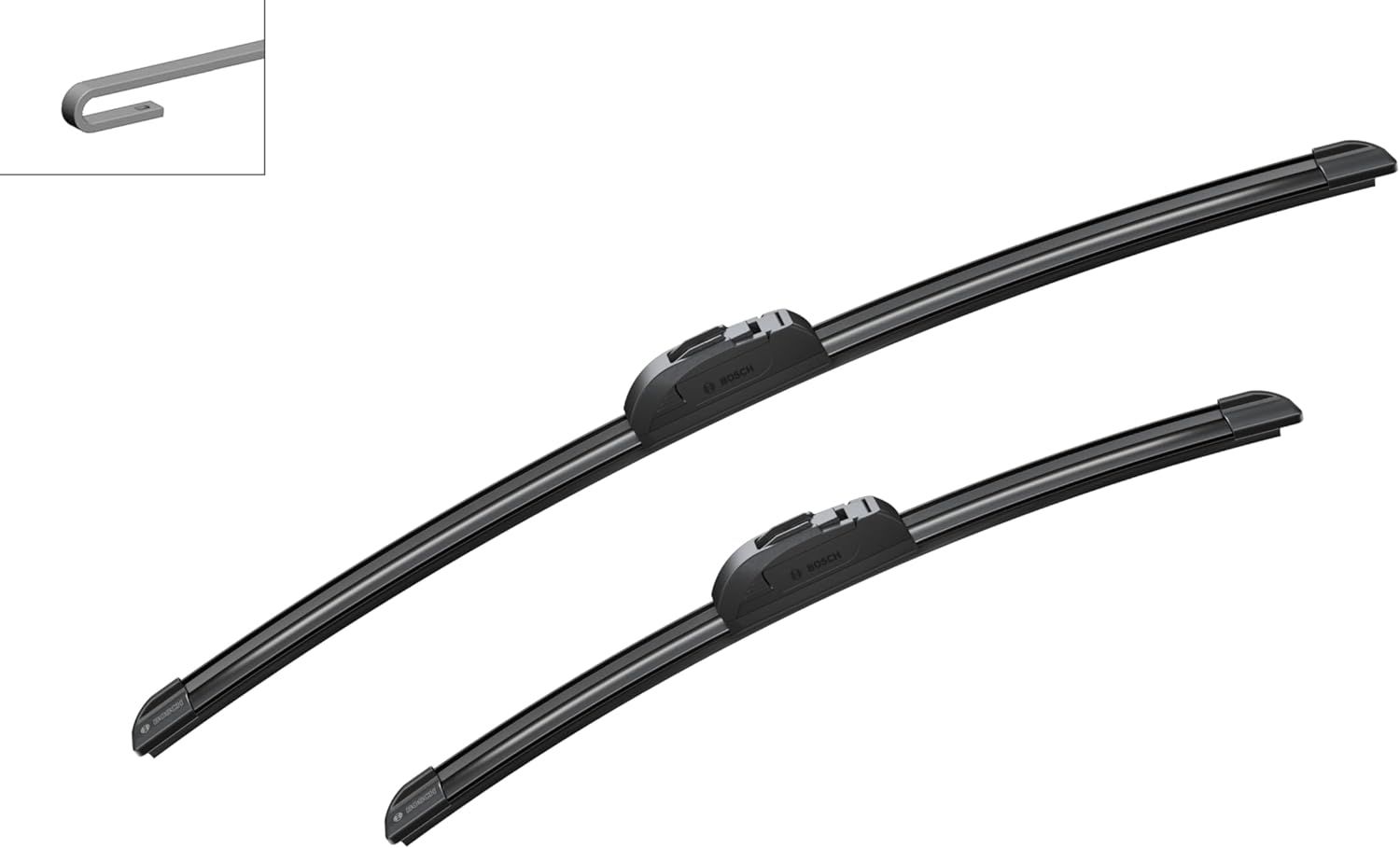 Склоочисник BOSCH Aerotwin безкаркасний комплект складається з двох елементів довжиною 550 мм і 400 мм. Безкаркасна конструкція забезпечує рівномірний притиск леза по всій поверхні лобового скла. Виріб належить до серії AEROTWIN RETROFIT і призначений для автомобілів з лівостороннім розташуванням керма. Комплект підходить для заміни склоочисників на передньому склі.
