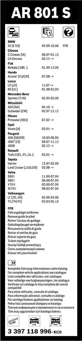 Комплект безкаркасних склоочисників Bosch Aerotwin 3397118996 складається з двох щіток довжиною 600 мм і 530 мм. Вони призначені для автомобілів з лівостороннім керуванням і забезпечують щільне прилягання до лобового скла. Аеродинамічний спойлер і спеціальна гумова суміш зменшують шум під час роботи та продовжують термін служби. Комплект підходить для багатьох сучасних моделей, де потрібна ефективна очистка скла в різних погодних умовах.