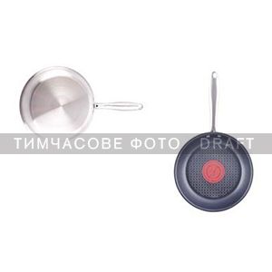 Сковорода з нержавіючої сталі має протипригарне покриття чорного кольору із захисною насічкою. Діаметр моделі складає 28 см. За висоти 5 см сковорода має однакову товщину бічних стінок і дна – 2 мм. Універсальність моделі зумовлена широкою сумісністю з різними видами плит: газовими, електричними, склокерамічними, індукційними й галогенними. До того ж її можна мити в посудомийній машині.