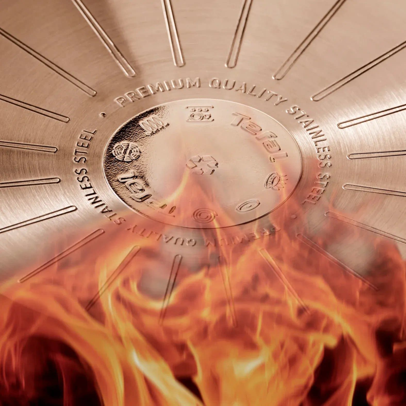 Сковорода Tefal Emotion+ поєднує корпус із нержавіючої сталі та антипригарне покриття Extra Life X5, що забезпечує стійкість до зношування під час щоденного використання. Формат діаметром 18 см використовується для приготування невеликих порцій. Індикатор нагріву Thermo-Signal стає повністю червоним при досягненні оптимальної температури для початку приготування. Індукційне дно забезпечує рівномірний розподіл тепла під час приготування на різних типах плит.