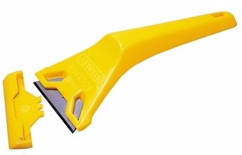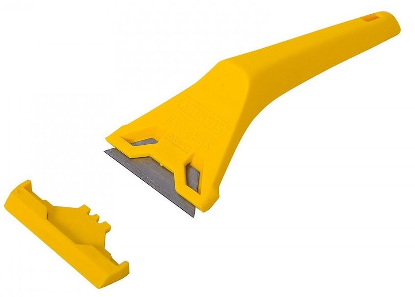 Скребок Stanley, для шибок має жовту пластмасову ручку з замінним високоміцним лезом 1992 дпя ножів. Використовується для оздоблювальних робіт. Ідеальний для видалення зі скла рекламних наклейок, а також для видалення надлишків фарби з шибок.