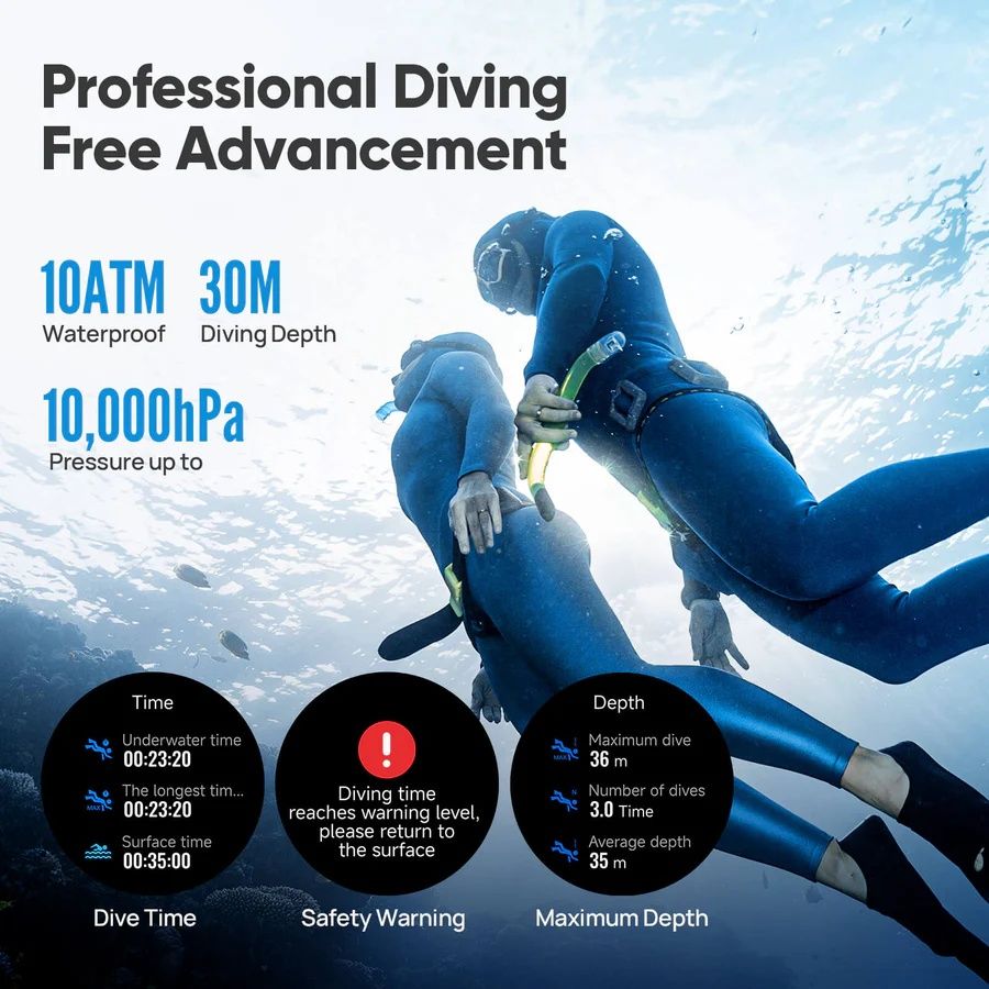 Спортивні функції:150+ спортивних режимів, тренувальні звіти, аналіз активності, маршрути та навігація для outdoor-активностей, бігові метрики та тренувальний аналіз, режим фрідайвінгу з контролем глибини