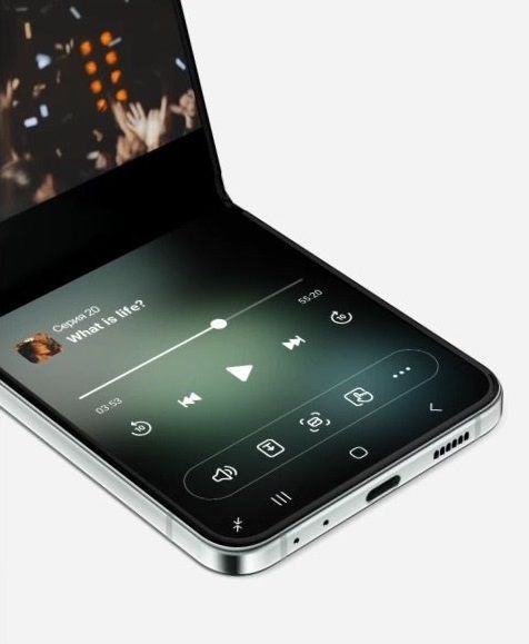 Galaxy Flip5 представляє 3,4-дюймовий екран Flex Window, створений для самовираження. Компактний і привабливий з усіх боків, цей складаний смартфон настільки ж універсальний, наскільки й портативний. Найкомпактніший Galaxy Flip щільно складається, і його легко тримати як у кишені, так і в руках. Пориньте у світ футуристичних кольорових схем, навіяних світом природи: м'ятний, графіт, кремовий, лавандовий. Нічне селфі, зроблене в машині на тлі набережної з міським пейзажем на задньому плані.