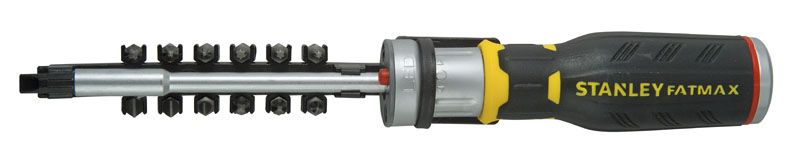 Викрутка Stanley "FatMax", бітотримач реверсний 1/4", з підсвічуванням, зберігання біт у рукоятці, 12 біт, SL, PH, PZ, Torx