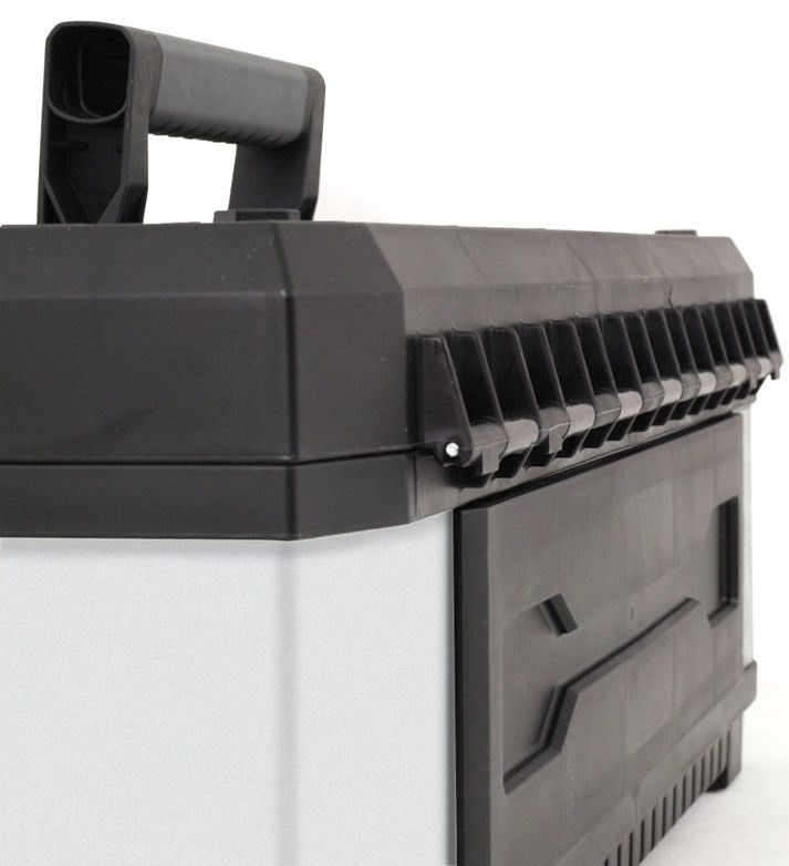 Переносний лоток для транспортування інструменту і дрібних деталей, при цьому в ящику залишається місце під великий інструмент, оскільки довжина лотка менше довжини ящика.