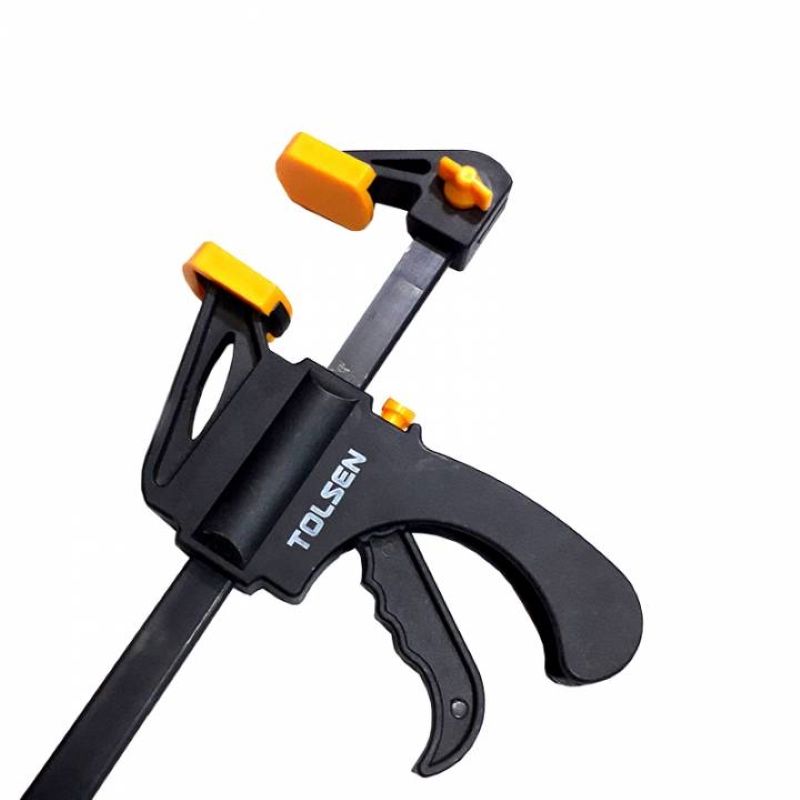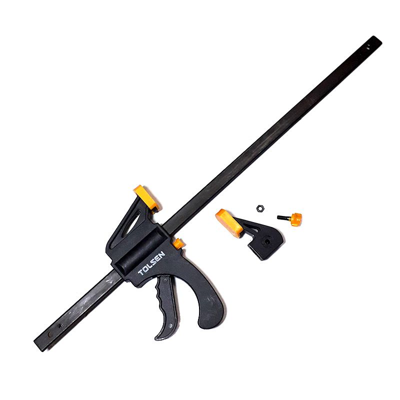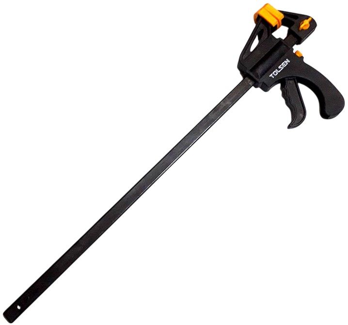Струбцина Tolsen швидкозатискна довжиною 450 мм призначена для фіксації деталей в момент обробки. Модель оснащена функціями стискання та розтискання. Інструмент зручний тим, що дозволяє здійснювати затискання однією рукою.