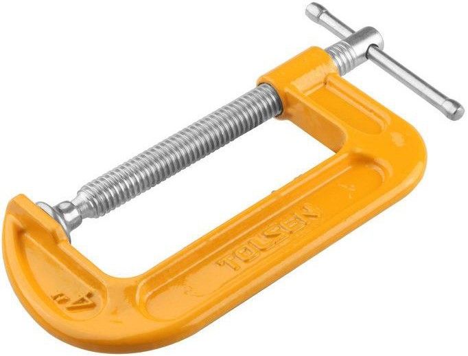 Струбцина Tolsen G-подібного типу довжиною 200 мм призначена для фіксації деталей шляхом притискання між собою або до потрібної поверхні. Ручний інструмент широко використовується столярами і зварювальниками в процесі обробки.