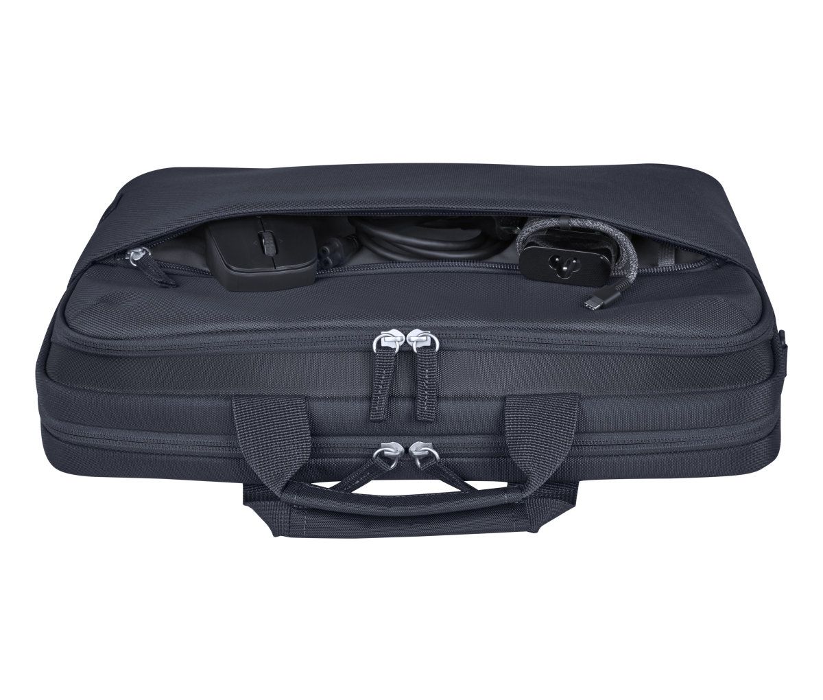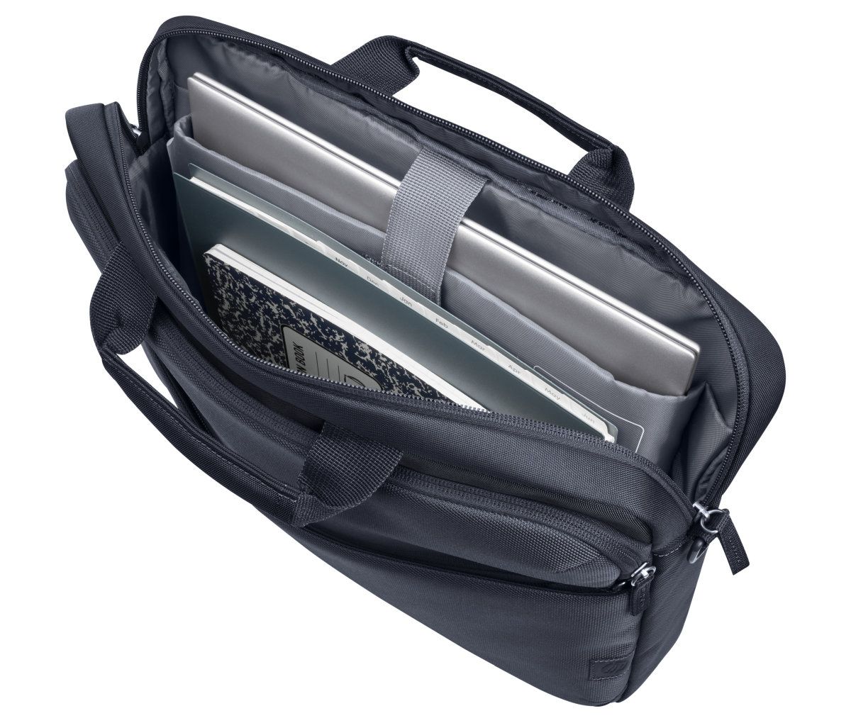 Компактна та міцна сумка для ноутбука HP Everyday 14" виготовлена з водовідштовхувального поліестеру темно-сірого кольору. Вміщує ноутбук до 14 дюймів, має м’яке відділення для захисту від ударів і подряпин, додаткові кишені для аксесуарів і документів. Оснащена знімним плечовим ременем і ременем для кріплення до валізи. Ідеальний вибір для щоденного використання.
