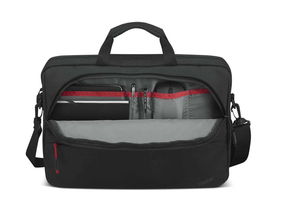 16-дюймова сумка Topload (Eco) ThinkPad Essential має всі переваги, які ви очікуєте. Пакуйте і розпаковуйте на льоту. І переїжджайте з офісу в кафе і назад без перешкод завдяки м'якому, організованому внутрішньому зберіганню, блискавкам з легким захопленням, регульованому плечовому ременю та 16-дюймовому відділенню для ноутбуків.