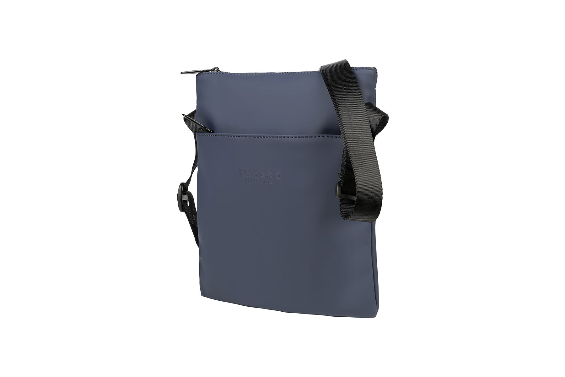 Компактна повсякденна сумка через плече Tucano Gommo Shoulder Bag. Сумка через плече Gommo Shoulder Bag тонка, має зовнішню кишеньку для аксесуарів і регульований плечовий ремінець. Матеріал сумки виготовлено з прогумованого матеріалу, а також внутрішньою системою захисту від радіо-випромінювання і здатна запропонувати значний захист від електромагнітних хвиль, які випромінюють смартфони.