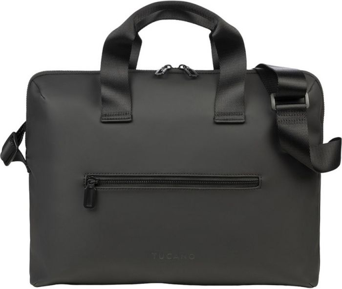Сумка Tucano Gommo в стилі мінімалізм спортивного дизайну для ноутбука 15,6" і MacBook 16", виготовлена з прогумованого матеріалу. Має велике одинарне відділення з внутрішньою кишенею для ноутбука та зовнішньою кишенею для аксесуарів.