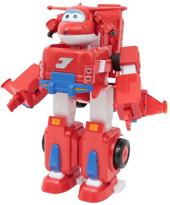 Джетт - дружелюбний, грайливий і дуже швидкий літак! Він працює з усіма в аеропорту міста і любить подорожувати і доставляти посилки дітям по всьому світу. Коли місії Джетта стикаються з проблемами, Джетт дзвонить своїм найкращим друзям, Супер Крилам! Набір включає дві ігрові фігурки-трансформери: транспорт Джетта, що трансформується в робота Robo Rig висотою 17 см та ігрову фігурку Джетт серії Transform-a-Bots заввишки 5 см. Фігурка Джетта легко поміщається як у кабіну автомобіля так до його робота