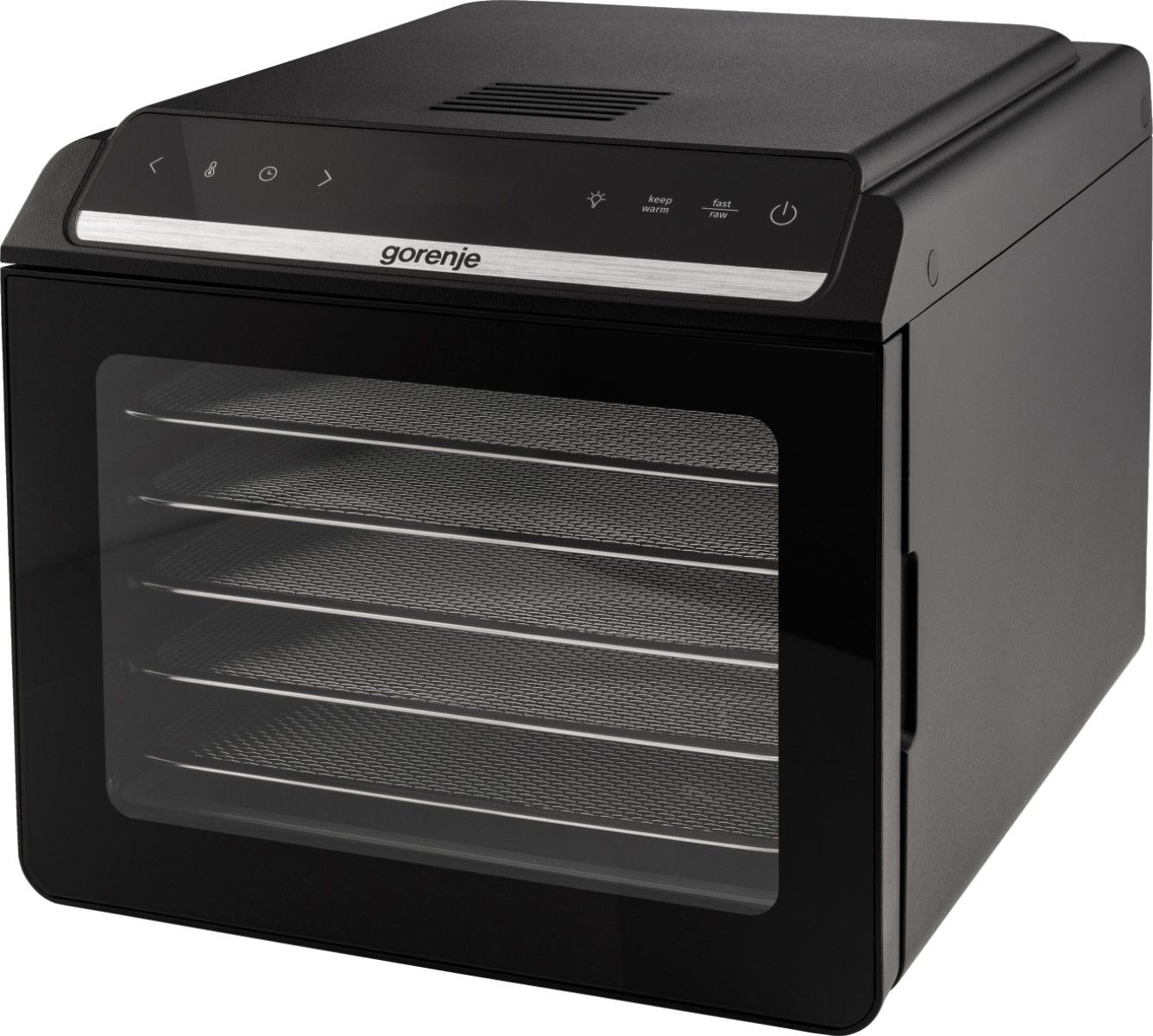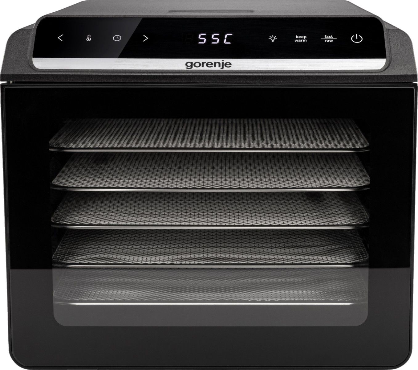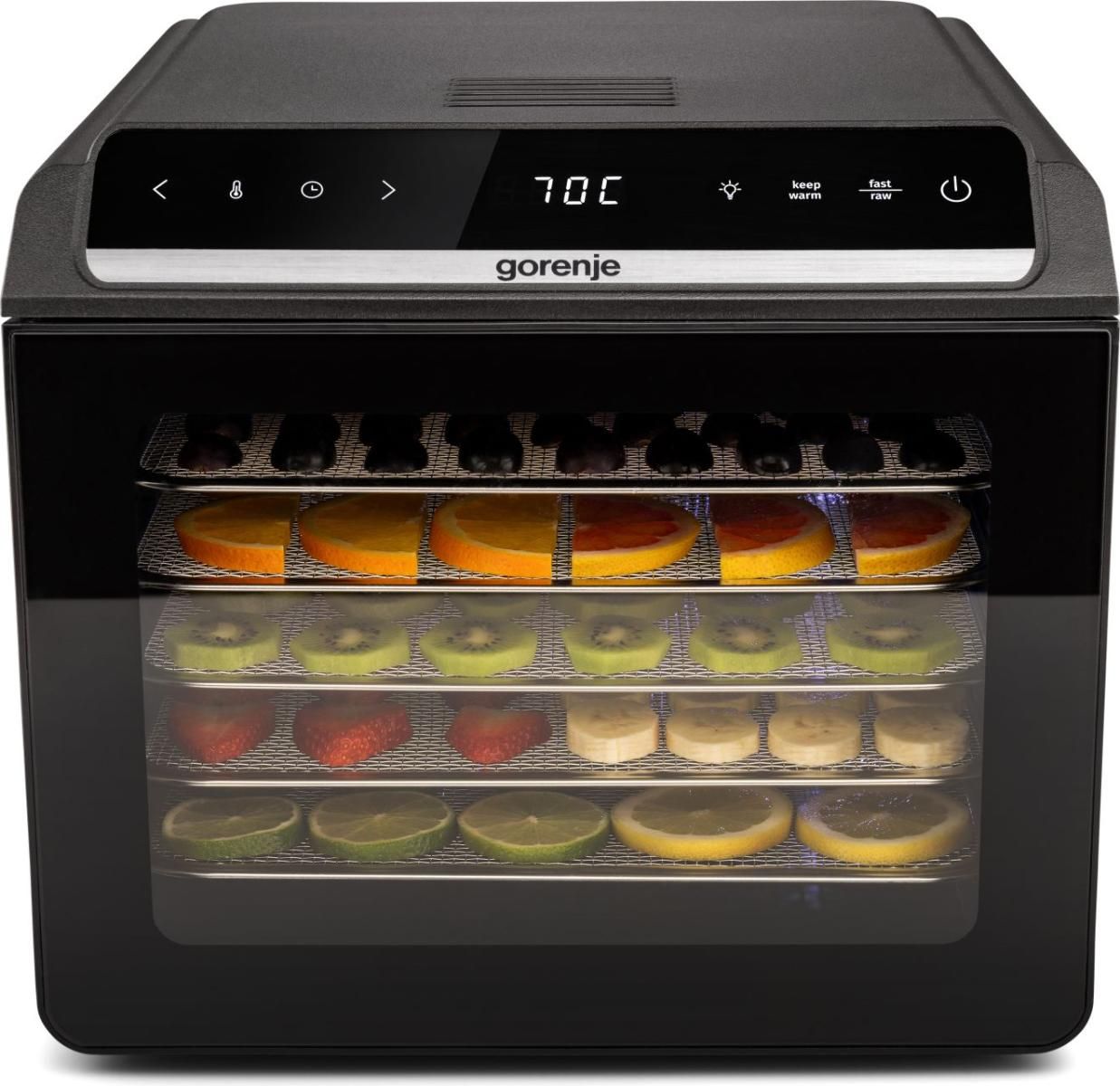 Сушарка для продуктів Gorenje 580Вт, піддонів - 6x1.5см, діаметр - 25см, макс - 75°С, дисплей, пластик+метал, чорний