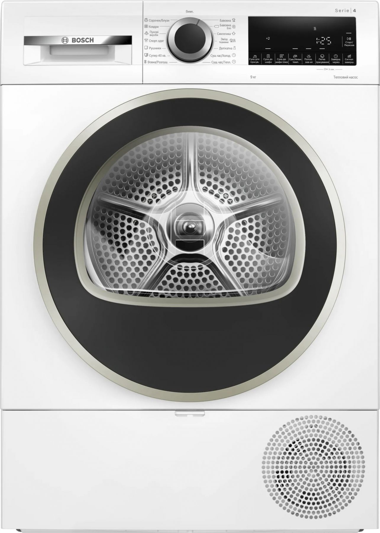 Сушильна машина Bosch тепловий насос, 9кг, A++, 61см, дисплей, білий