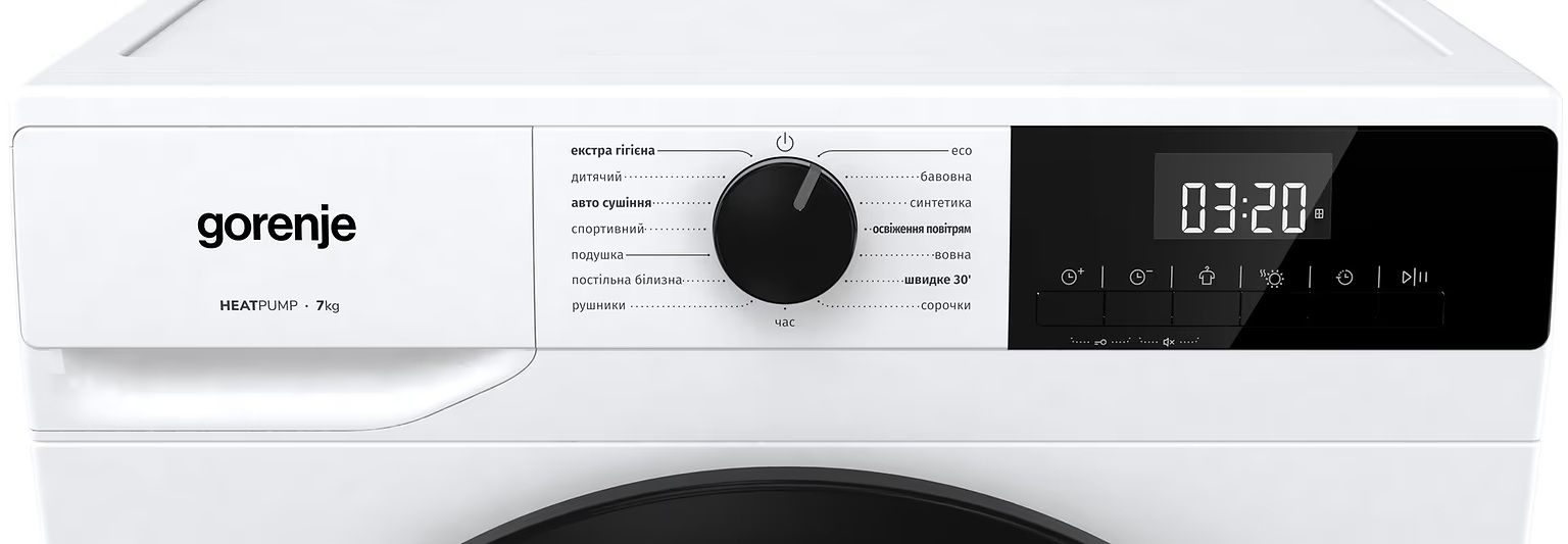 Сушильна машина Gorenje тепловий насос, 7кг, A+, 51см, дисплей, 15 програм, білий