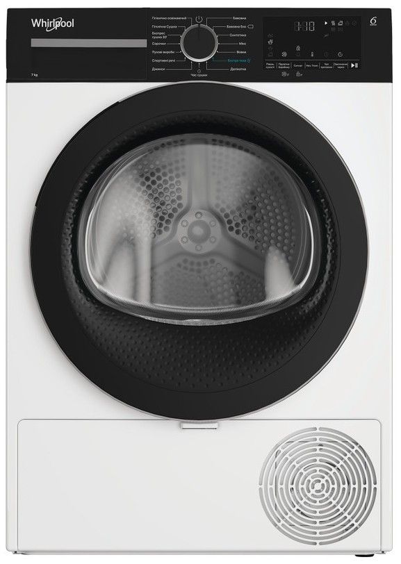 Сушильна машина Whirlpool тепловий насос, 7кг, A+++, 54,3см, дисплей, інвертор, люк чорний, білий
